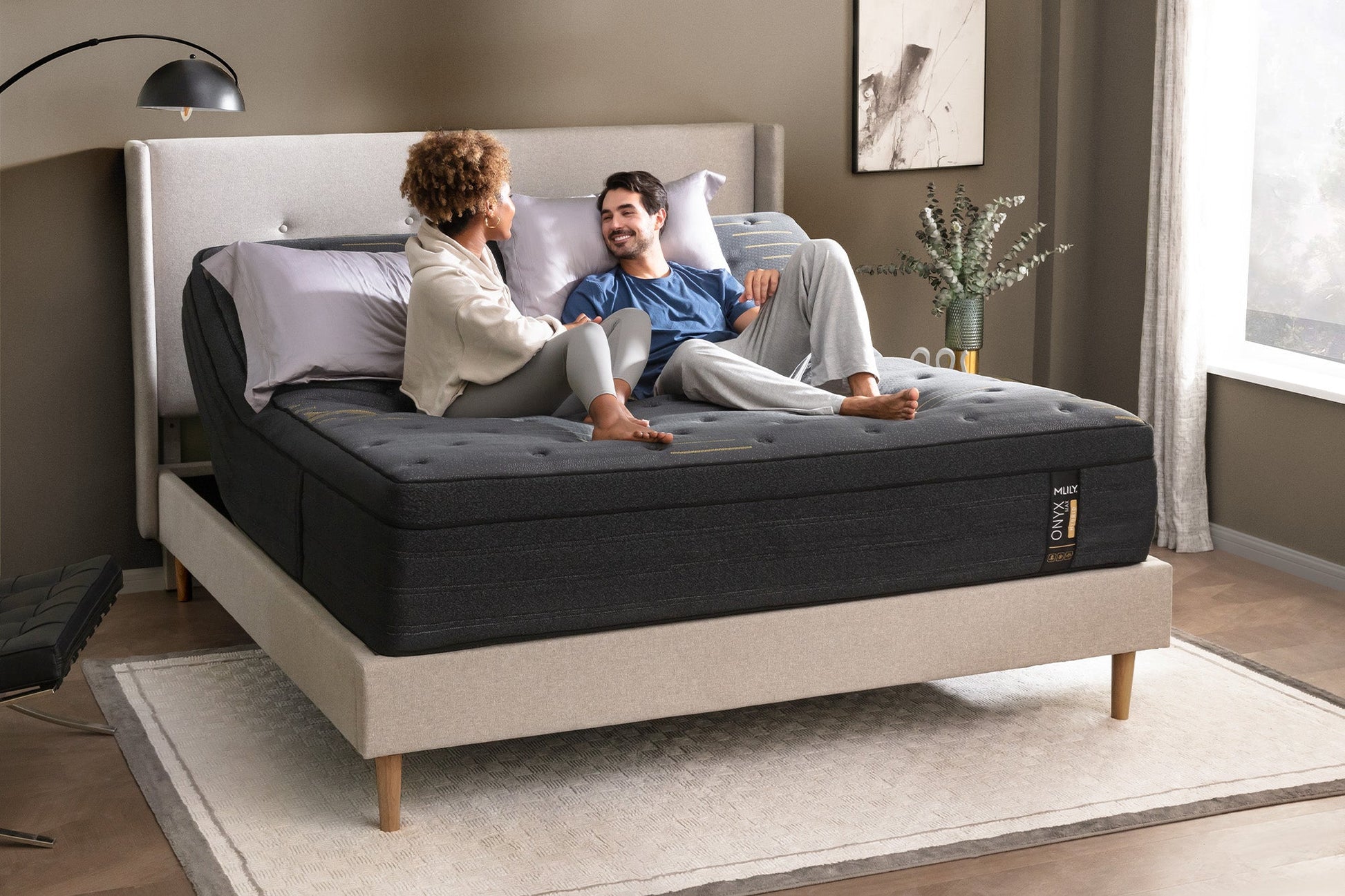 The Onyx Max is designed to provide a luxuriously plush sleeping surface while also being supportive and comfortable. The quilted Cooling Knit Cover and the two different gel-infused foams regulate temperature and improve air circulation. These foams also work in tandem with the latex-like AdaptiFoam™ to actively adapt to each and every individual.