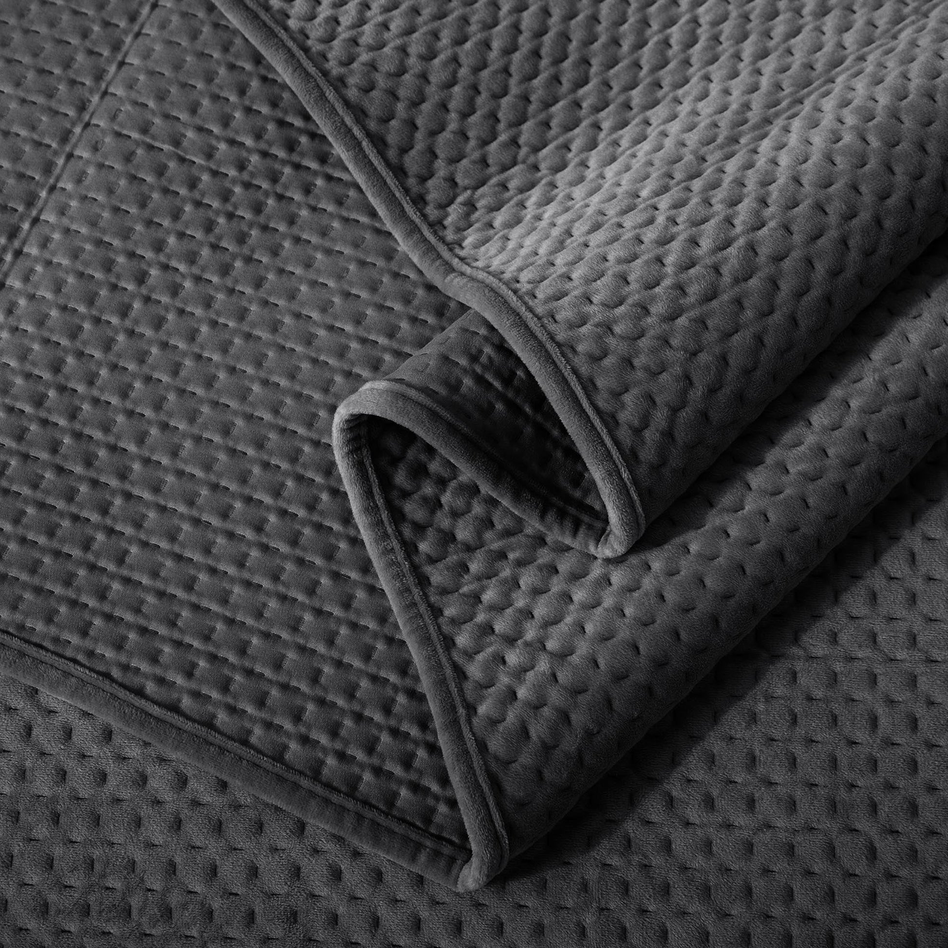 Crafted with a buttery-soft poly-velvet front and a smooth brushed microfiber backing, this versatile quilt can be used as a bedspread, quilt blanket, or coverlet. The ultra-soft texture and inviting warmth make it ideal for curling up and relaxing in comfort.